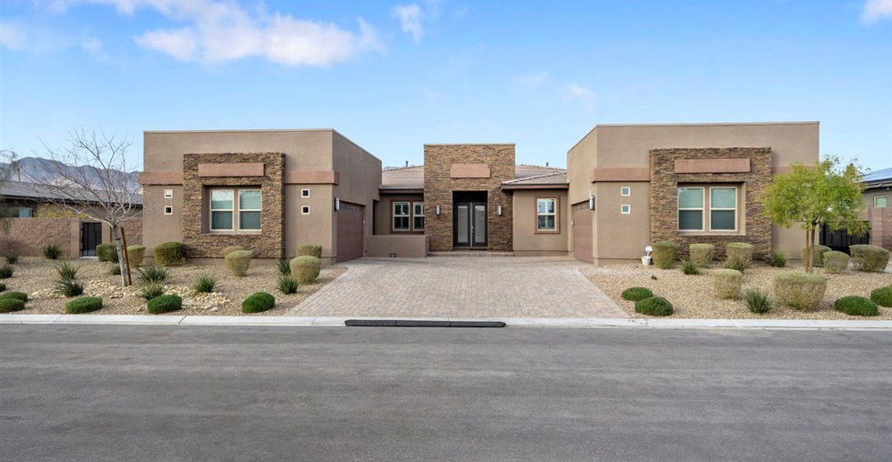 Welcome to luxurious Las Vegas! Where Luxury meets Land w/this spectacular & impeccably clean, move-in ready single-story home! Exceptional features include: PAID OFF SOLAR, Expansive half-acre lot w/Sunset MTN views. Private gated cul-de-sac w/only 9 homes. TWOx2-car garages (1 w/EV charging)+ large driveway! HIGH ceilings + FRESH PAINT throughout & Gourmet kitchen are sure to impress! FEEL the texture of the leather granite as you enjoy the Large center island equipped w/prep sink & ample cabinets! Open Concept home w/family room + wet bar& Large sliding glass doors leading to the backyard. True indoor/outdoor living at it’s finest. Sparkling Pool/Spa/waterfalls/RV parking & Large side yard capable of many things! All 4 beds are equipped w/their own personal bathroom & walk-in closet! BRAND NEW carpet in Primary & guest bedroom. 2 other bedrooms have NEW matching tile floors. Massive versatile den w/separate exterior entrance permits use as a home gym, game room, media room & MORE.