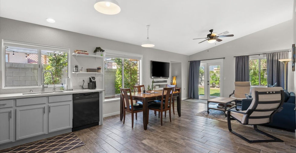 Beautiful single-story home on a serene CORNER in quiet neighborhood! With an open concept and vaulted ceilings, it offers a spacious ambiance. The large living room welcomes you upon entry. Immaculately maintained, the home showcases recent upgrades to include quartz countertops, upgraded stainless-steel sink with an RO system, repainted cabinets throughout the entire home, and includes a water softener system and newer appliances. The entire exterior was painted in April 2023, and the backyard lot has been fully upgraded. Lush green grass and mature fruit trees provide shade and beauty to the home, complete with irrigation. Alongside the home enjoy the shaded garden patio under the pergola with vines. The garage boasts built-in shelves and work stations. With a curated front lawn and mature purple-plum tree for delightful curb appeal, you don't want to miss out on this opportunity!