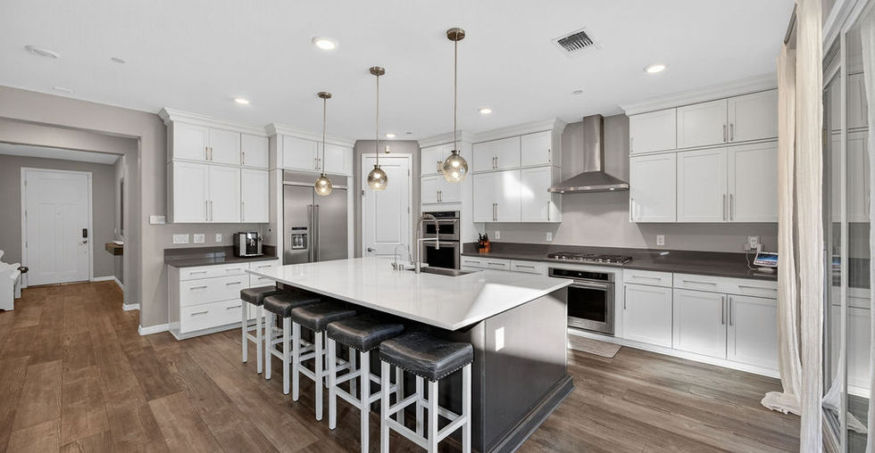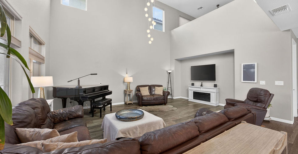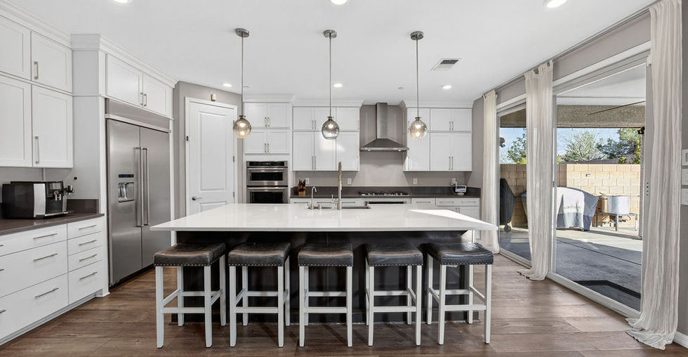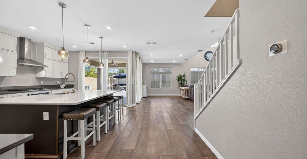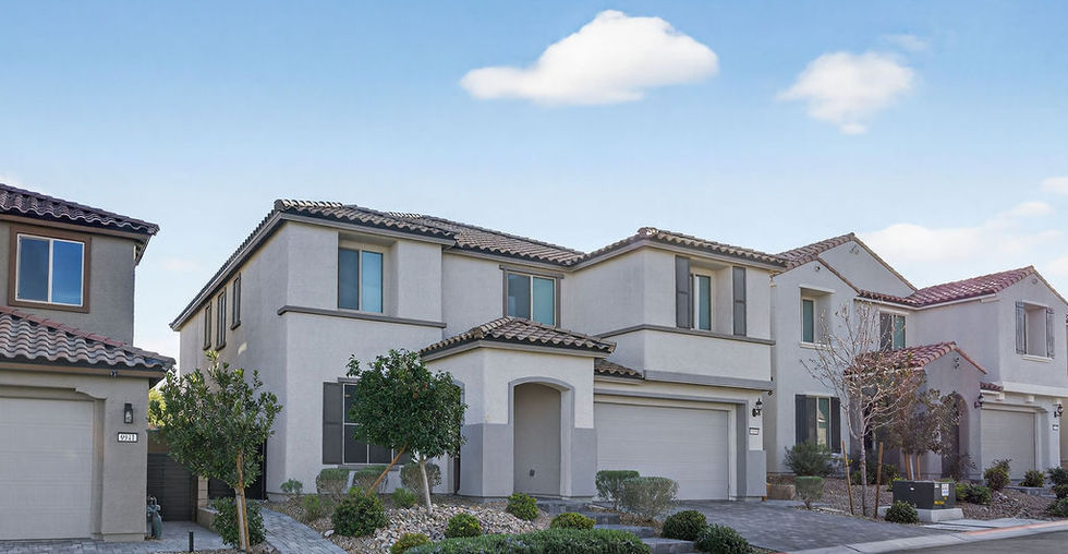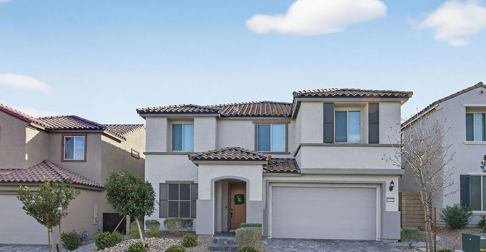 BEAUTIFUL 5 BED/ 4 BATH home seated in a gated SKYE CANYON community! OPEN CONCEPT living at its finest! Vaulted ceilings and natural light shine in the Great Room. A CHEF'S KITCHEN features a large granite island, double ovens, KitchenAid appliances & tons of storage. A downstairs bedroom & full bathroom is perfect for guests or in-laws. The LARGE primary suite boasts a walk-in closet, dual vanities, soaking bath & shower. BEST PART... FLAT RATE ELECTRIC BILL... only $17/month (NV Energy requirement) and TESLA CHARGING PORT installed! 3car garage, tankless water heater, water softener & RO system. Jellyfish lighting treatment encompassing the whole house, custom window treatments with remote, and recessed, smart lighting. One-block walk to community: full gym, Olympic-sized pool, private fenced splash pad, playground, a park with community events, a weekly farmers market, and a coffee shop! Less than 30minute drive to either Creech AFB or Nellis AFB. Come view today before she's gone!
